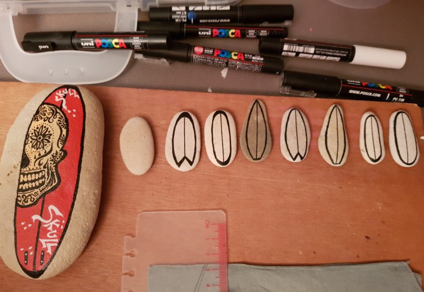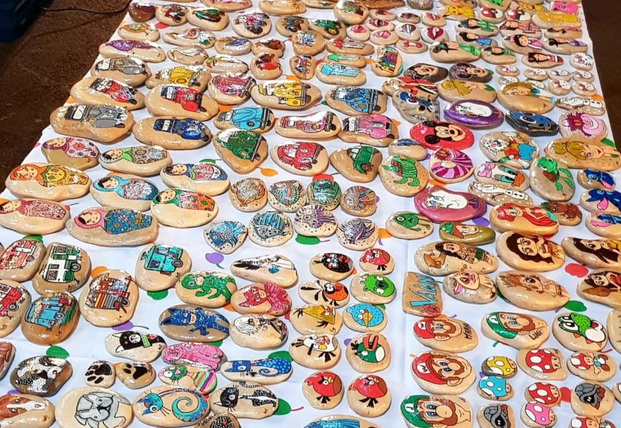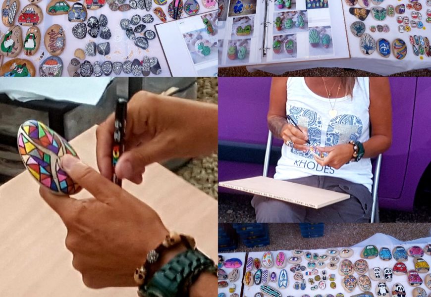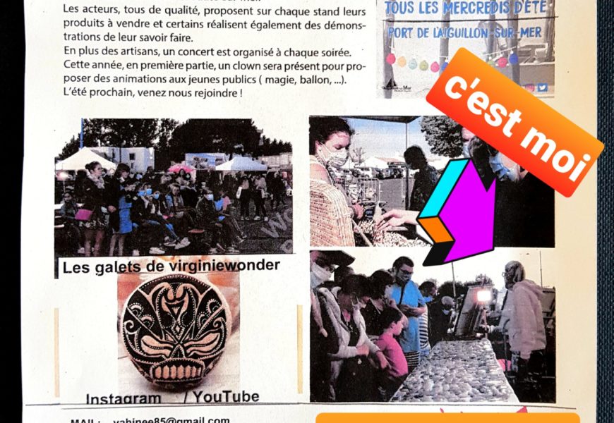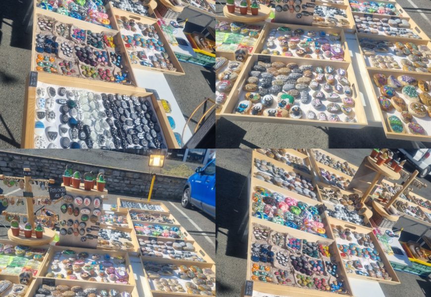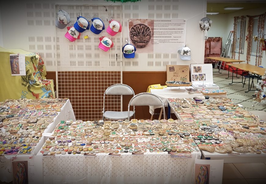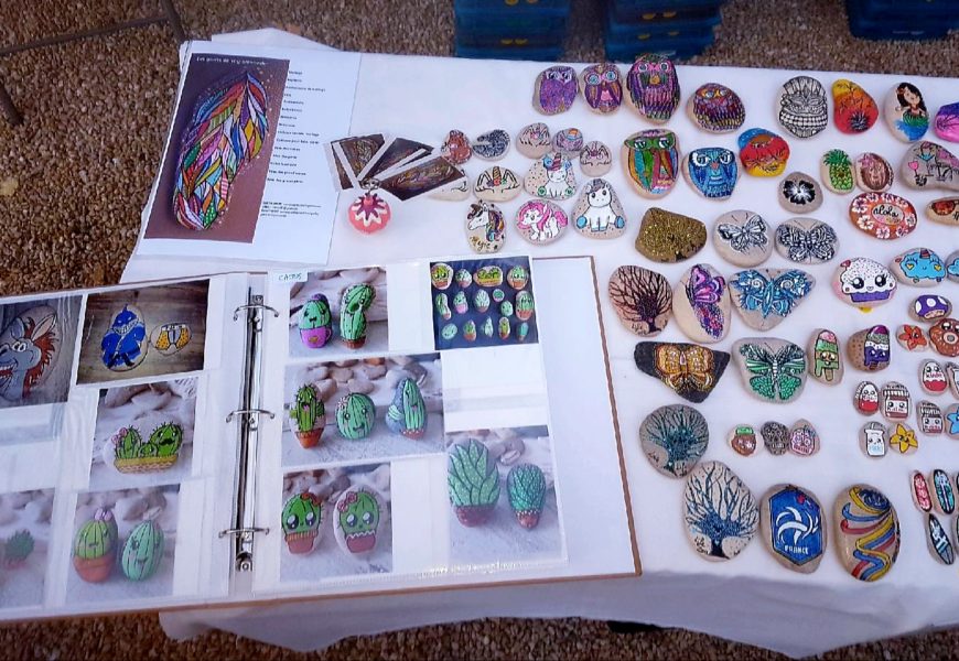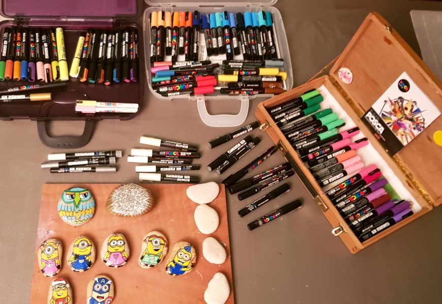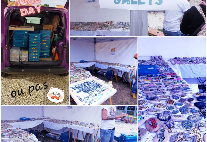 de temps en temps j’aime faire voyager tout ces galets auprès de personnes qui ne connaissent pas l ‘ampleur des dessins que l’on puisse faire sur une pierre. raconter l ‘histoire d’un ou 2 dessins et pourquoi pas, être à la rencontre de gens,et dessiner parmi eux.