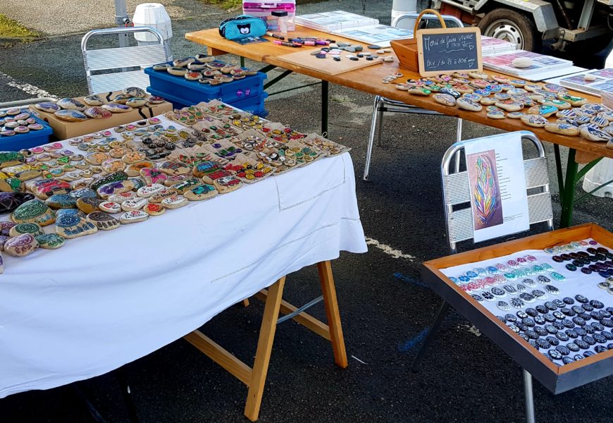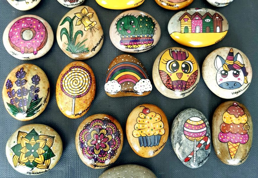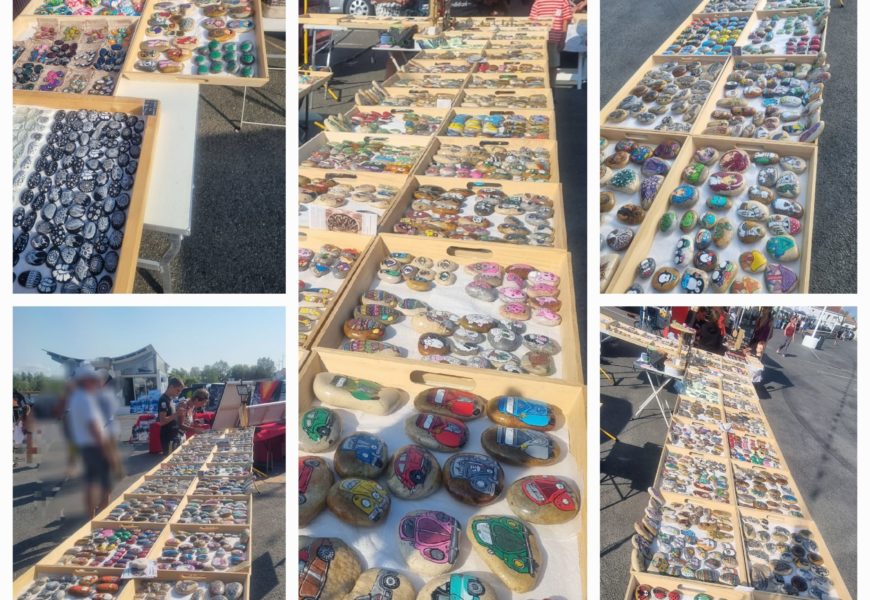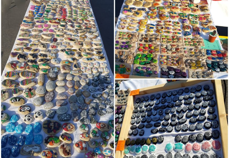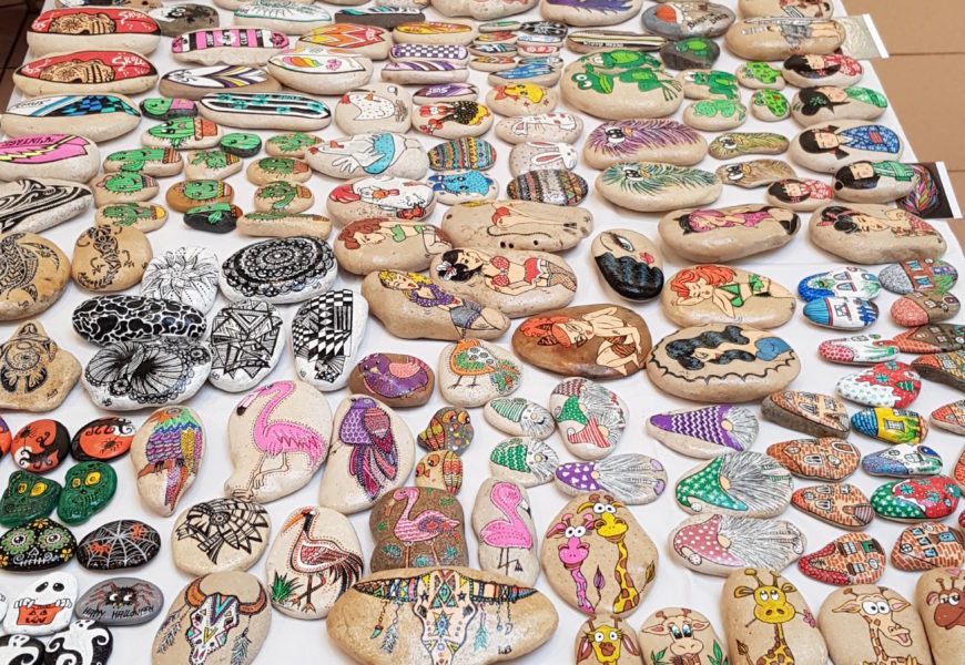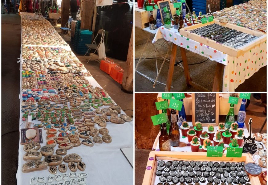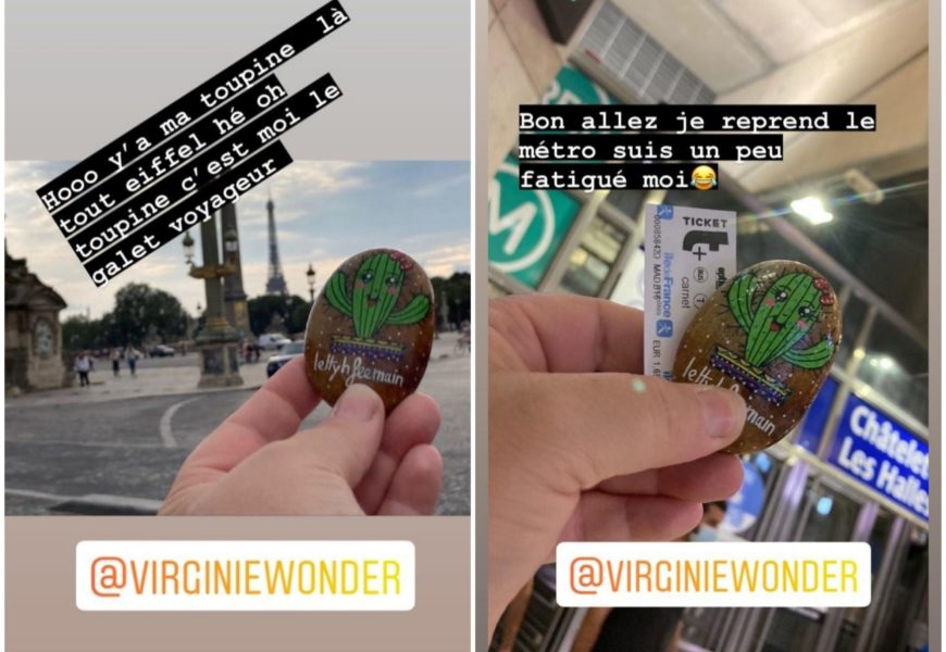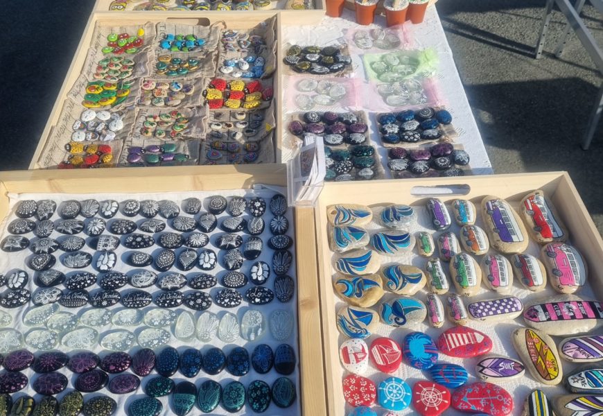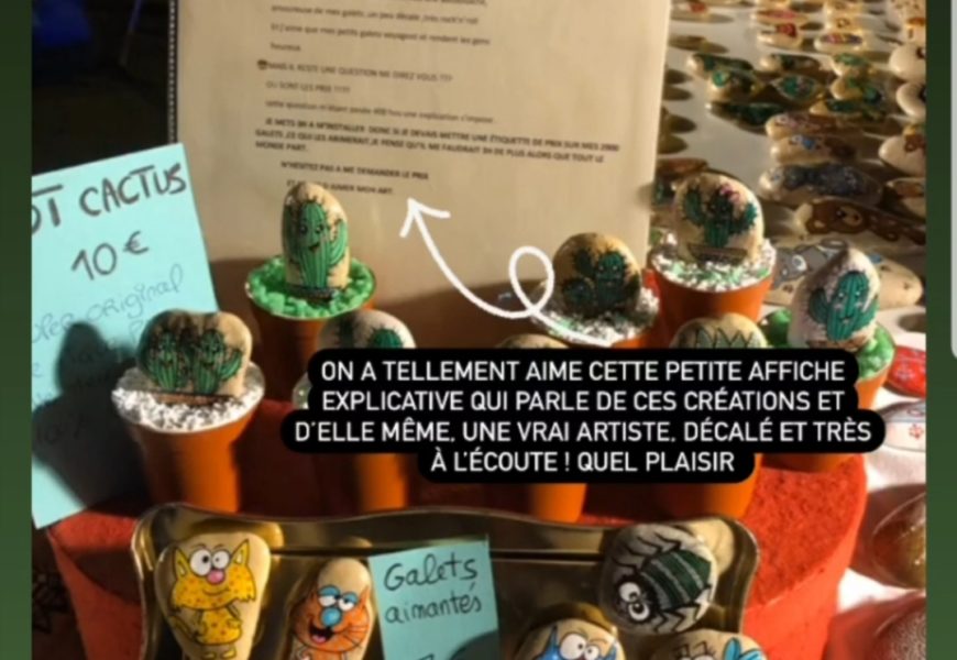 de temps en temps j’aime faire voyager tout ces galets auprès de personnes qui ne connaissent pas l ‘ampleur des dessins que l’on puisse faire sur une pierre. raconter l ‘histoire d’un ou 2 dessins et pourquoi pas, être à la rencontre de gens,et dessiner parmi eux.