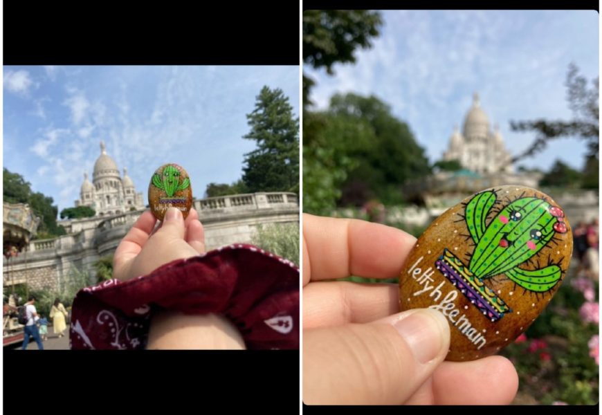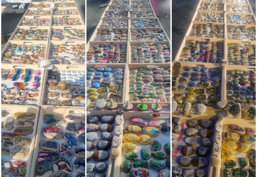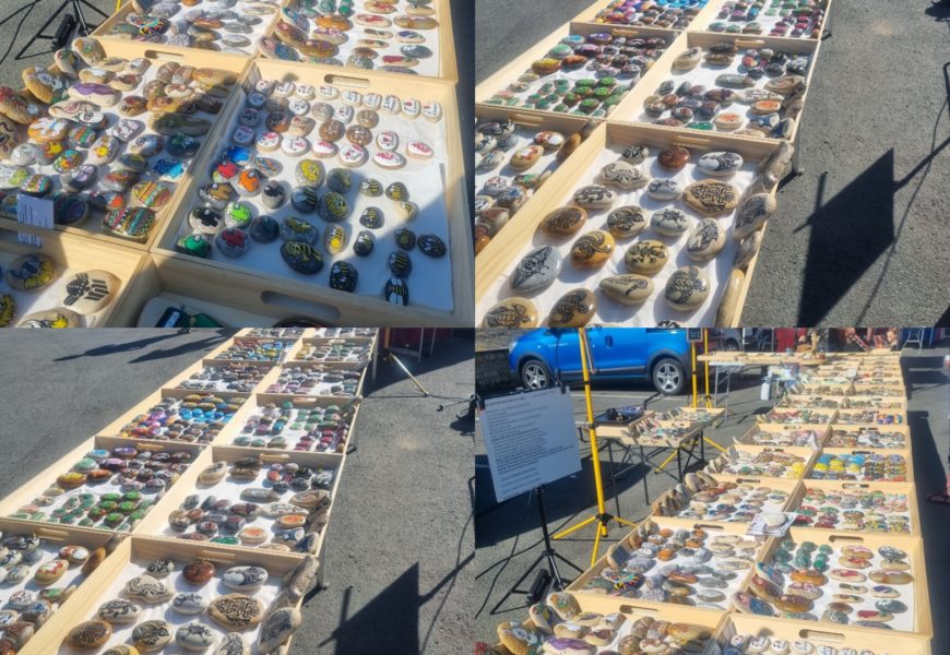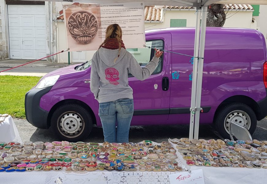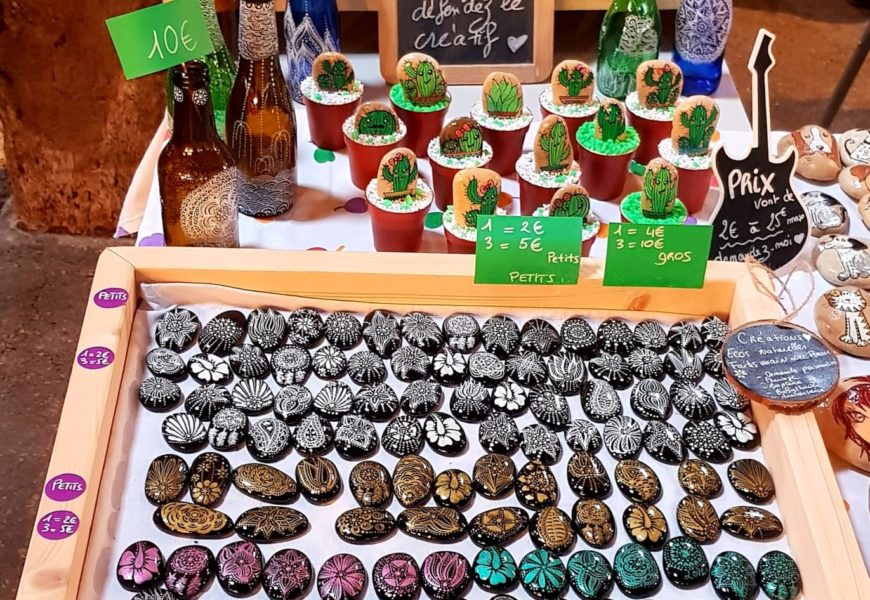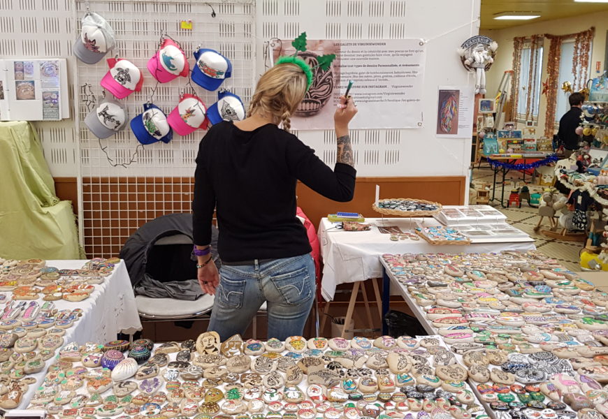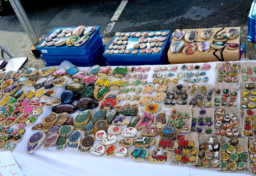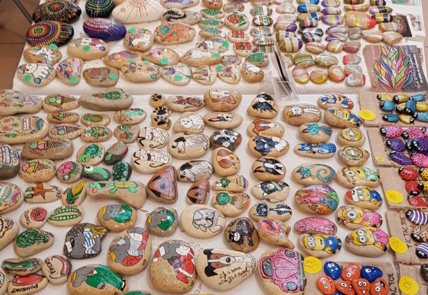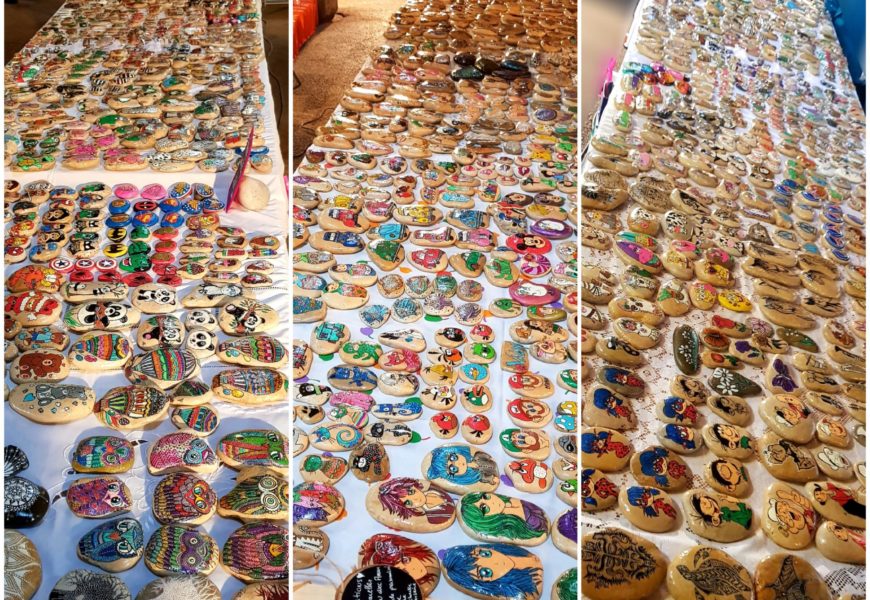 de temps en temps j’aime faire voyager tout ces galets auprès de personnes qui ne connaissent pas l ‘ampleur des dessins que l’on puisse faire sur une pierre. raconter l ‘histoire d’un ou 2 dessins et pourquoi pas, être à la rencontre de gens,et dessiner parmi eux.