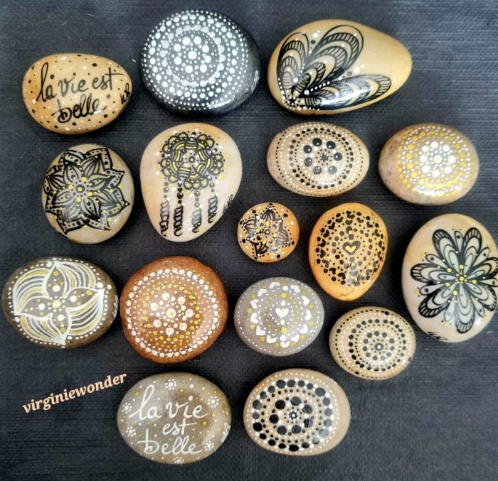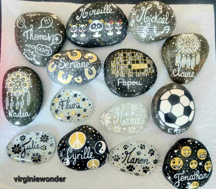 Tous les galets sont vernis des 2 côtés et signés par mes soins. Je peux renseigner par message pour les tailles exactes des galets. Ce sont de jolis objets décoratifs qui feront le bonheur pour un cadeau, une naissance, un mariage, baptême, babyshower, anniversaire, ou tout simplement pour une déco sympa originale.