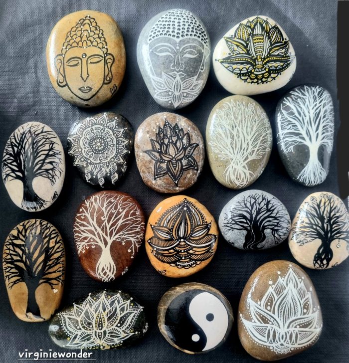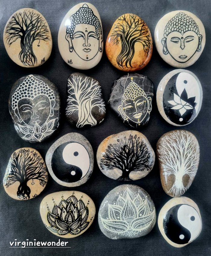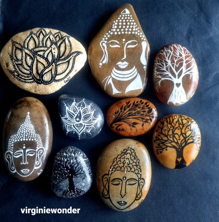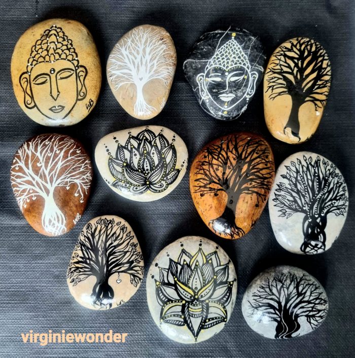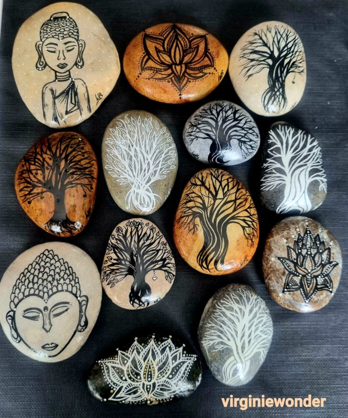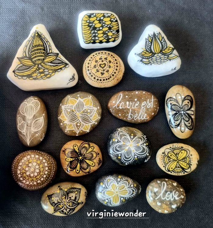 Tous les galets sont vernis des 2 côtés et signés par mes soins. Je peux renseigner par message pour les tailles exactes des galets. Ce sont de jolis objets décoratifs qui feront le bonheur pour un cadeau, une naissance, un mariage, baptême, babyshower, anniversaire, ou tout simplement pour une déco sympa originale.